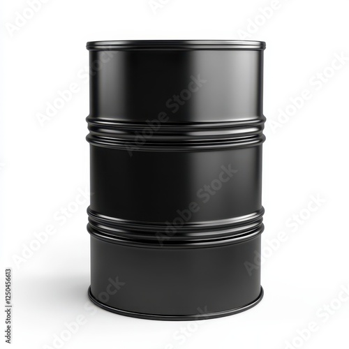 drum, barrel, container, metal, black, industrial, oil, gas, chemical, storage, shipping, transport, liquid, fuel, waste, hazardous, reusing, material, cylinder, capacity, volume, steel, iron, tank, vessel, manufacturing, industry, production, energy, power, cargo, delivery, product, gallon, litre, round, shiny, glossy, clean, empty, full, texture, surface, object, isolated, white, background