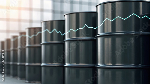 Black oil barrel petroleum price chart economic impact energy industry finance growth investment business. Economic impact and effect of oil, energy security, financial market connection