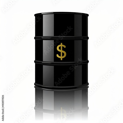 Black oil barrel with dollar sign symbolizing market value and economy