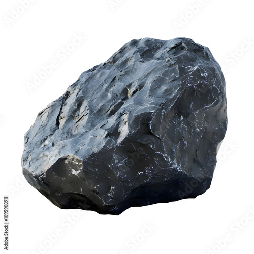 black rock stone mineral quartz meteroite on transparent background