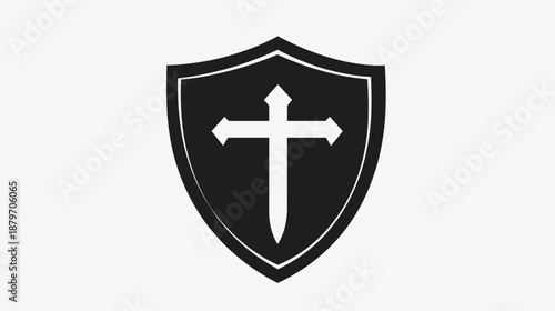 shield, cross, emblem, symbol, protection, safety, security, logotype, icon, graphic, design, white, black