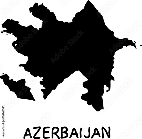 Black silhouette map of Azerbaijan on a white background. High-quality vector illustration ideal for educational content, geographic infographics, and political or cultural designs.