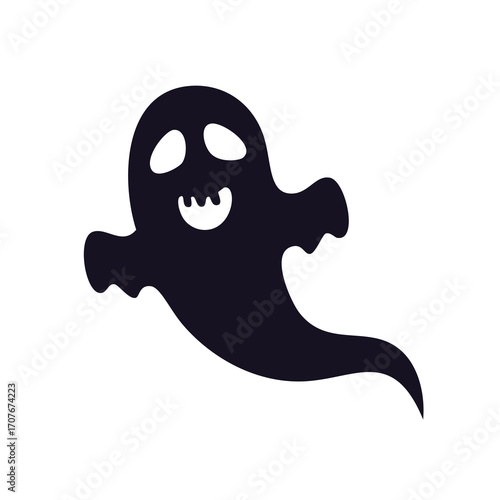 halloween, ghost, silhouette, skittish, scarey, cartoon, character, cute, friendly, happy, smiling, waving, flying, apparition, spirit, phantom, monster, creature, illustration, vector, design, decoration, holiday, autumn, october, fun, playful, simple