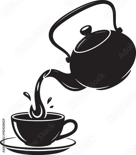 Black silhouette of teapot and cup. Black silhouette of porcelain teapot pouring tea in the cup
