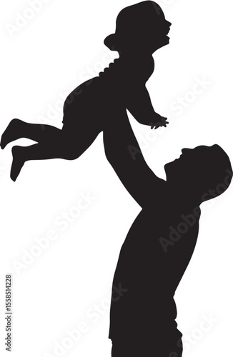 black, silhouette, vector, illustration, father, children, lifting, upward, movement, joyful, happy, family, scene, man, children, toddler, eltern, love, care, playful, bonding, graphic, design, element, image, artwork, people, person, adult, infant, baby, monochrome, simple, minimalist, clean