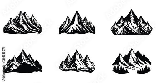 Black silhouette vector of mountains peak