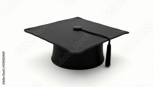 Black student cap, placed on a white background.