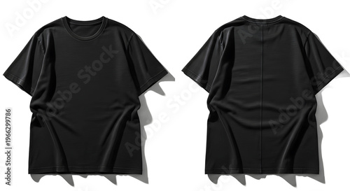 apparel, garment, clothing, t-shirt, shirt, black, blank, template, design, fashion, style, casual attire, wear, textile, cotton, fabric, presentation, front, back, view, isolated, background, studio, simple, plain, merchandise, product, display, empty, surface, nobody, object, layout, element