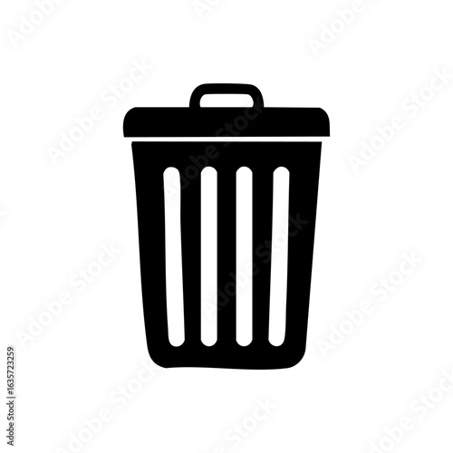 Black trash can icon in simple flat design, suitable for user interface, cleaning, waste management, or recycling concepts
