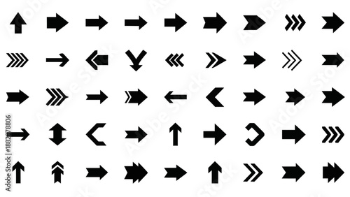 Black vector arrow icons silhouette set simple shapes clean cut high contrast minimal design stock illustration