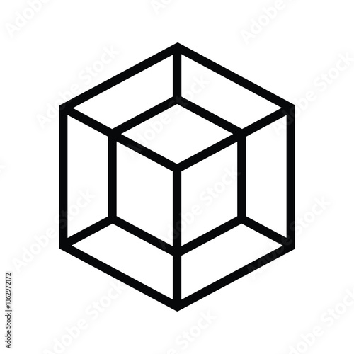 cube, wireframe, black, white, simple, three-dimensional, geometry, abstract, shape, box