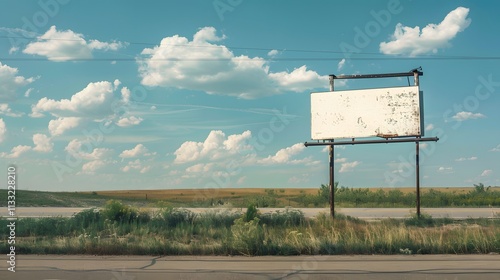 billboard, blank, signs, advertisement, advertising, roadside, rural, country, landscape, sky, cloud, summer, highway, road, travel, transportation, open, space, field, grass, nature, outdoors, empty, signage, marketing, promotion, background, scenery, horizon, huge