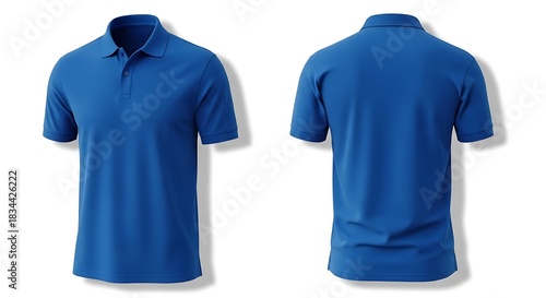 Blank blue polo shirt, front and back views, perfect for design mockups and branding, isolated on white background