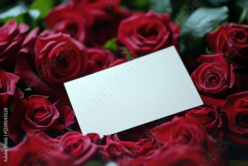 Blank Card Surrounded by Fresh Red Roses in a Romantic Setting