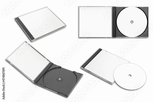 Blank CD and CD case mock up set. Clipping path included for easy selection. cd dvd cover album design template mockup isolated on white background. 3d rendering.