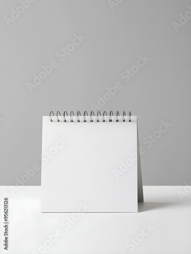 Blank desk spiral calendar mock-up. Minimalist photo with space for text. Empty 3D table calendar. Office and home decor. Bright minimal background photography for your message.