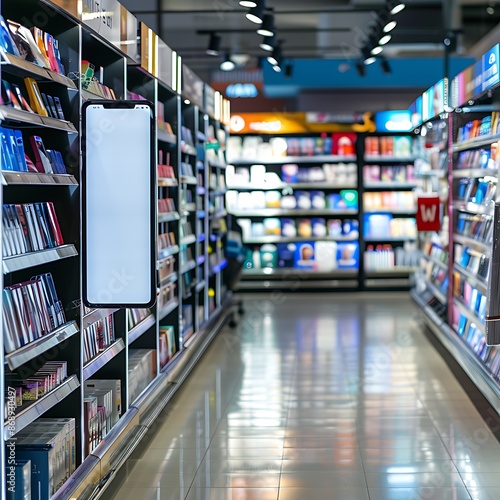 Blank device screen in the mobile accessories section of a large retail store.