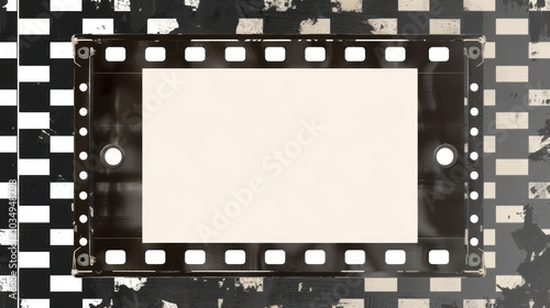 Blank filmstrip frame with grunge black and white background. Vintage photography mockup.