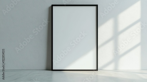 Blank frame mock up illuminated by natural light in a minimalistic indoor setting