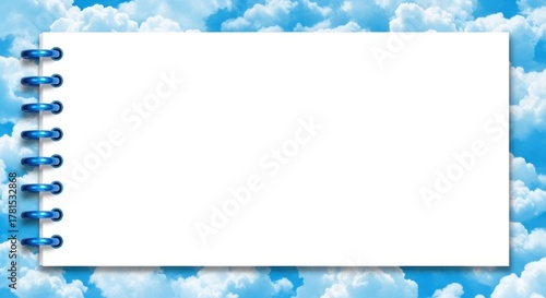 notepad, blank, sky, cloud, blue, white, paper, writing, space, creative, inspiration, bright, day, fluffy, cloudscape, empty, message, note, texture, frame, border, nobody, peaceful, calm, serene, beauty, natural, environment, nature, weather, open, clear sky, copy space, surface, clean, simple, presentation, template, stationery, spiral, notebook, light, airy, dreamy