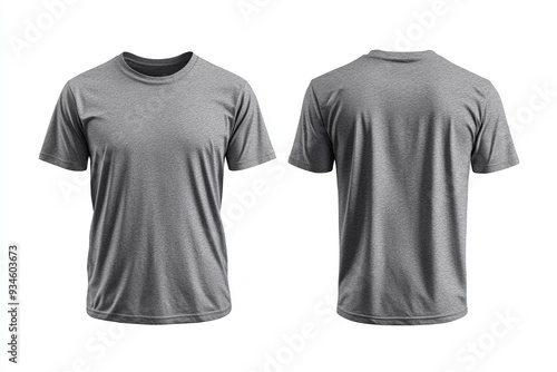 Blank Short sleeve t shirt mockup, grey T-shirts front and back view, used as design template isolated on white background .generative ai
