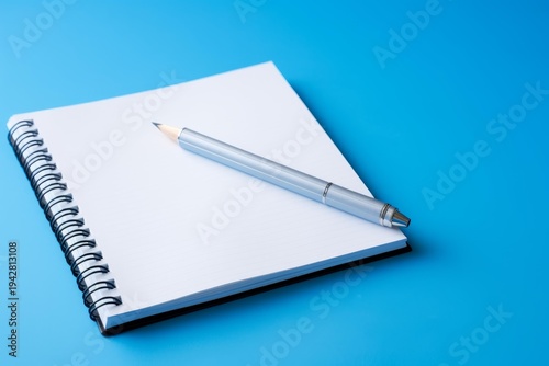 Blank spiral notebook with a pencil lying on its pages, ready for writing