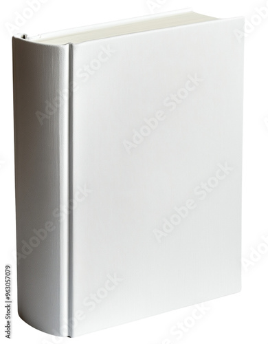 Blank White Book Cover Mockup: A pristine, unblemished blank white book cover mockup, isolated on a white background. Perfect for showcasing your designs or showcasing a blank canvas for creativity.