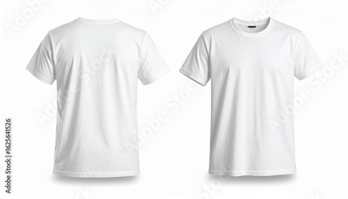 Blank white t-shirt mockup with front and back views. A plain, classic cotton tee template isolated on a white background for apparel design.