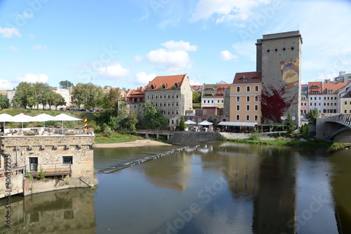 Blick von Görlitz über die Neisse zur Dreiradenmühle in Zgorzelec