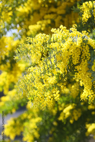 blooming acacia tree mimosa in a sunny day