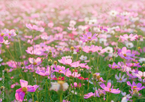 blooming colorful cosmos flower at agriculture garden.