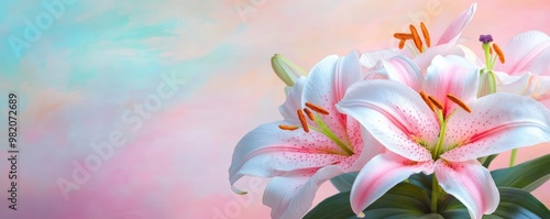 Blooming lilies, graceful petals, artistic expression, soft hues, watercolor style
