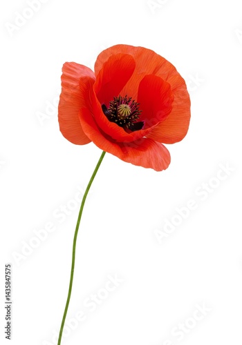 flower, blooming, standing, red, floral, single, bright, vibrant, stem, green, isolated, white, background, closeup, studio, shot, flora, plant, nature, growth, spring, summer, seasonal, fresh, still, life, botany, botanical, object, cut-out, design, element, decorative, detail