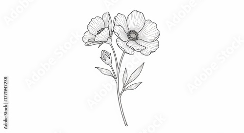 Blossoming Floral Sketch: A delicate and intricately drawn illustration of two elegant flowers on a slender stem, showcasing the beauty of floral design.