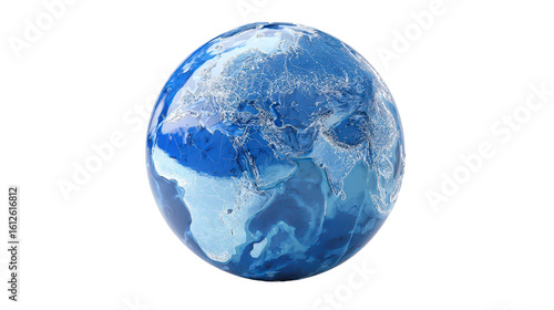 Blue 3D world globe showing day and night zones, isolated on a Transparent background, PNG file.