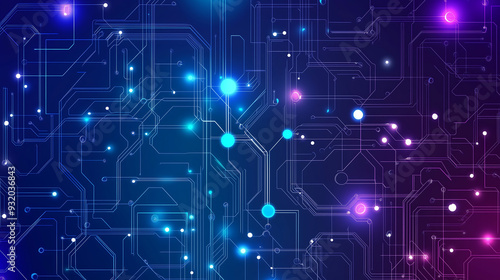 Blue and purple circuit board background with glowing dots, a technology concept vector illustration design