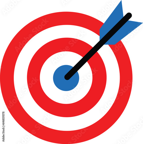 blue and red Target icon. Dartboard with arrow. Marketing strategy sign. Goal achievement symbol. Target Icon in trendy flat style isolated on transparent background.