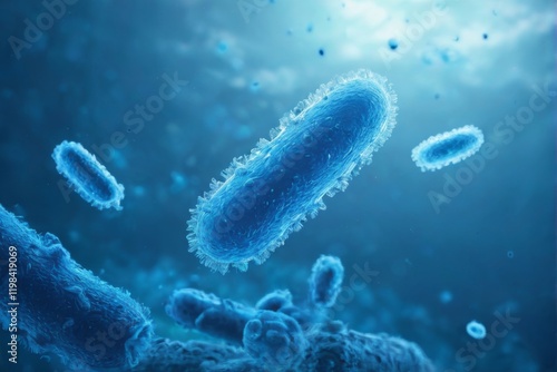 Blue Bacteria Floating in Ocean with Starry Night Background