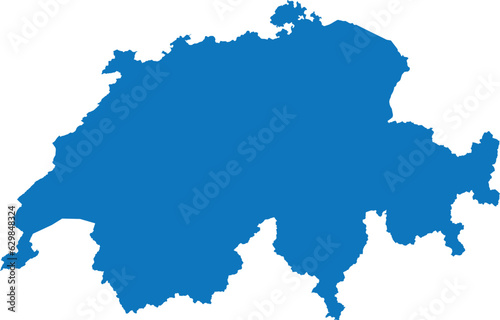 BLUE CMYK color detailed flat stencil map of the European country of SWITZERLAND on transparent background