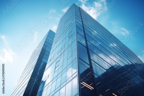 tall building, business building, skyscraper, blue skies, cloudscape, city landscape, business district, tower block, business building, city landscape, city skyline, building exterior, office space, business center, urban development, architectural style