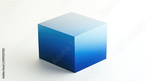 Blue gradient cube icon on clean white background symbolizing modern graphic design elements with ample space for text and branding opportunities