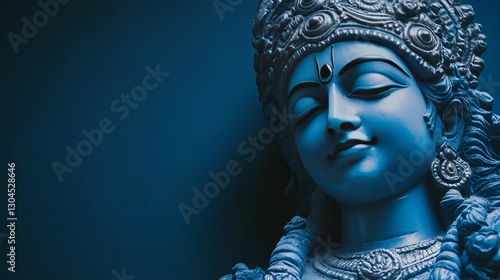 Blue Hindu Deity Sculpture. Meditative, Peaceful Face. Spirituality Concept.