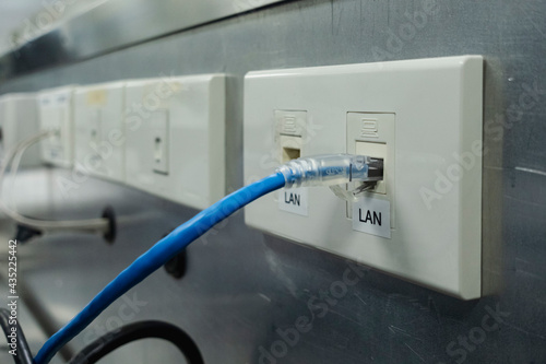 blue lan connect socket at wall