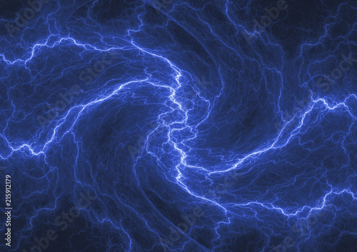 Blue lightning, abstract electrical background, power and energy concept