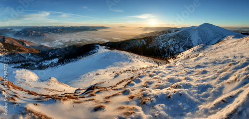 Blue mountain winter panorama at sunset Slovakia, peak Chleb