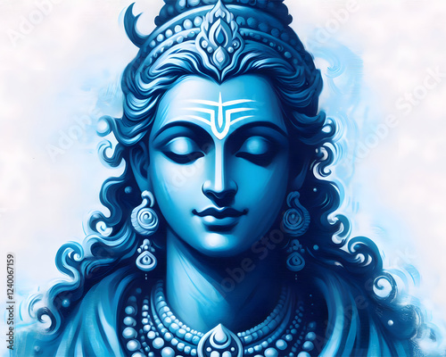 face, head, hair, sculpture, artistic, god, ai, culture, religious, religion, art, traditional, worship, love, believe, colourful, colours, temple, modern, ancient, spiritual, oilpaint, vishnu, earth, chakra, hindu, krishna, shiva, radha, portrait, blue