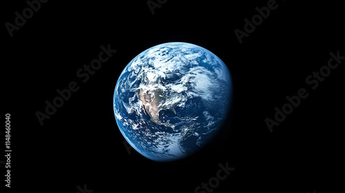 Blue planet viewed from space showing continents and clouds illuminated by sunlight