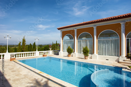 Blue pool under sun