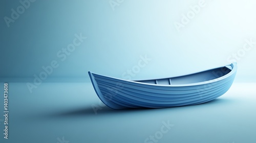 boat, dinghy, blue, studio, minimalist, still life, watercraft, wooden, design, modern, three-dimensional, rendering, digital, image, object, light, empty, space, background, colours, texture, shape, interior, still, illustration, product, photorealistic, simple, smooth, pale, grey, light blue, ocean, lake, river, fishing, travel, nature, peace, calm, modern art, conceptual, background, poster