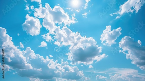 Blue sky with scattered clouds on a sunny day Clear Blue Sky with Fluffy White Clouds expansive blue sky small fluffy clouds room for text